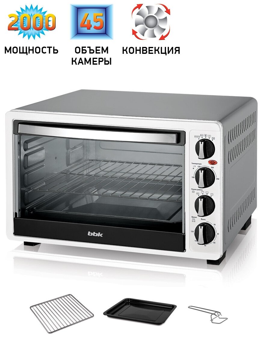 Мини-печь BBK OE4523MC (W/GR) white (Объем 45л, мощность 2000 Вт) (OE4523MC (W/GR))