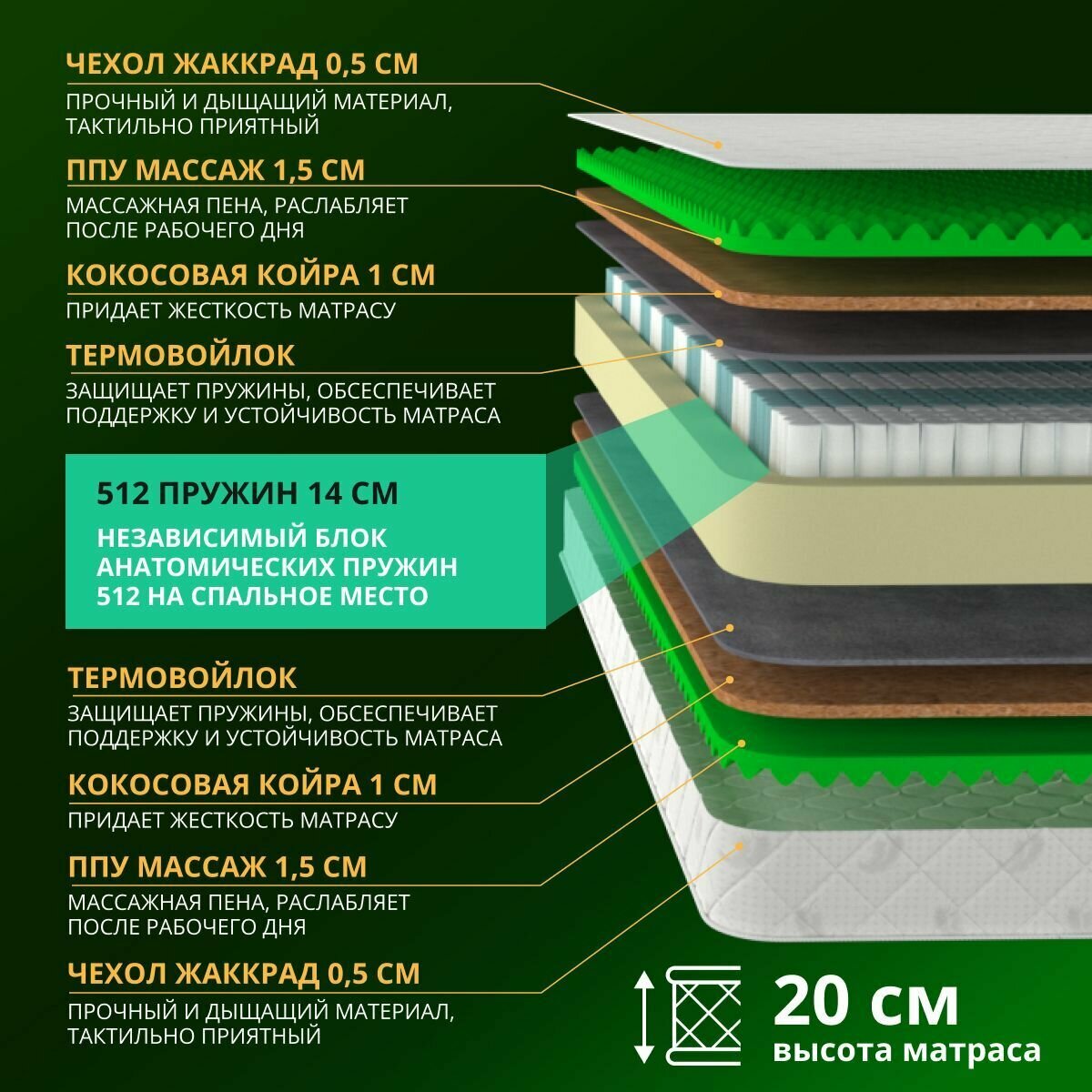 Матрас YANSON Greay Massage Cocos Line 60х200 ортопедический пружинный c независимым блоком пружин, кокосовая койра и ппу 10 001 ₽ Подробнее