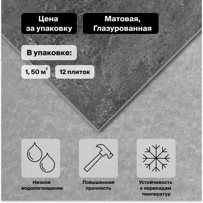Плиты Керамическая плитка настенная Laparet West графитовый 25х50 уп. 1,5 м2. (12 плиток)