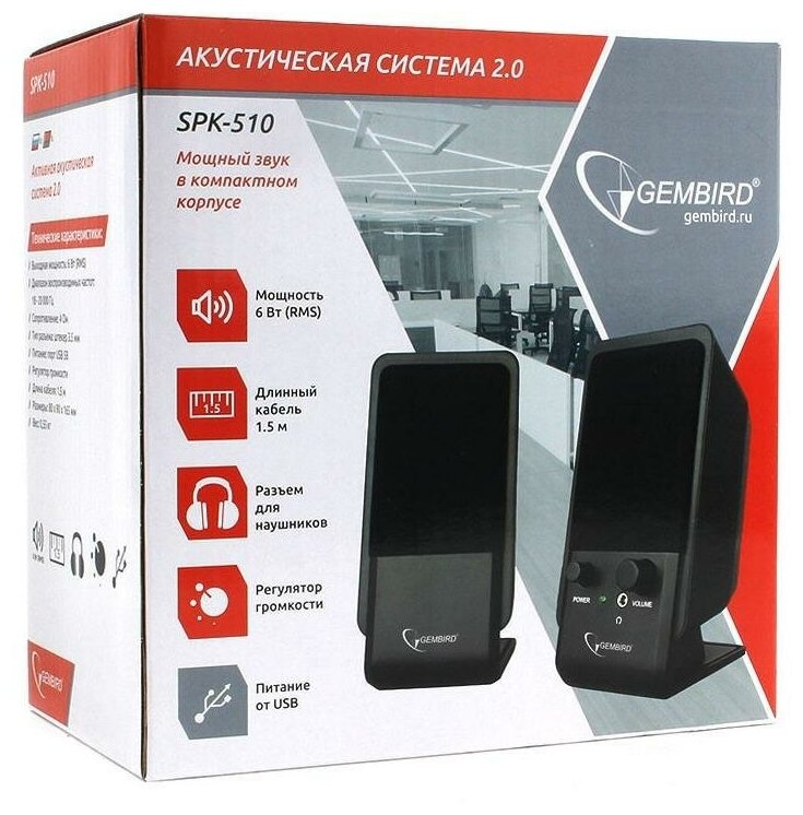 Колонки 2.0 Gembird SPK-510 [6 Вт, питание - USB порт, черный]