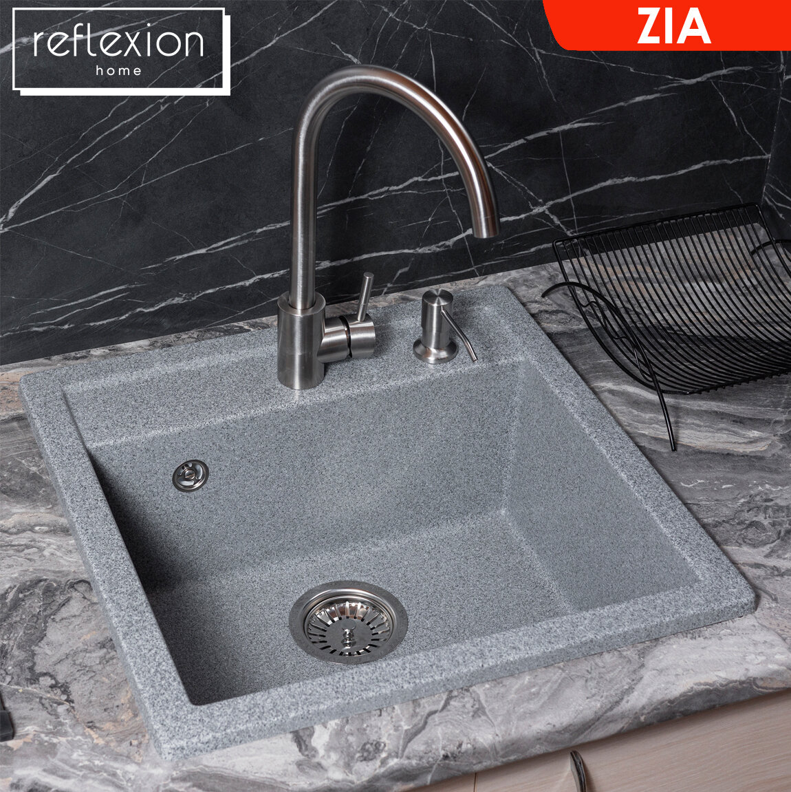 Кухонная мойка (сифон в комплекте) кварцевая врезная прямоугольная 51х50,5 см Reflexion Zia RX1251СL, цвет - уголь 7 300 ₽ Подробнее