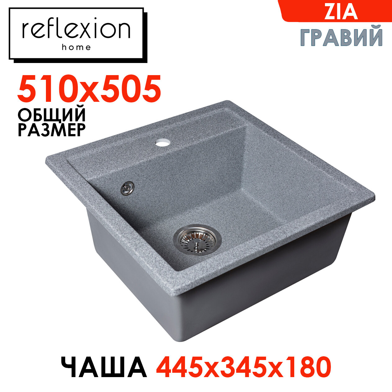 Кухонная мойка прямоугольная 510х505мм Reflexion Zia RX1251GR, гравий 7 300 ₽ Подробнее