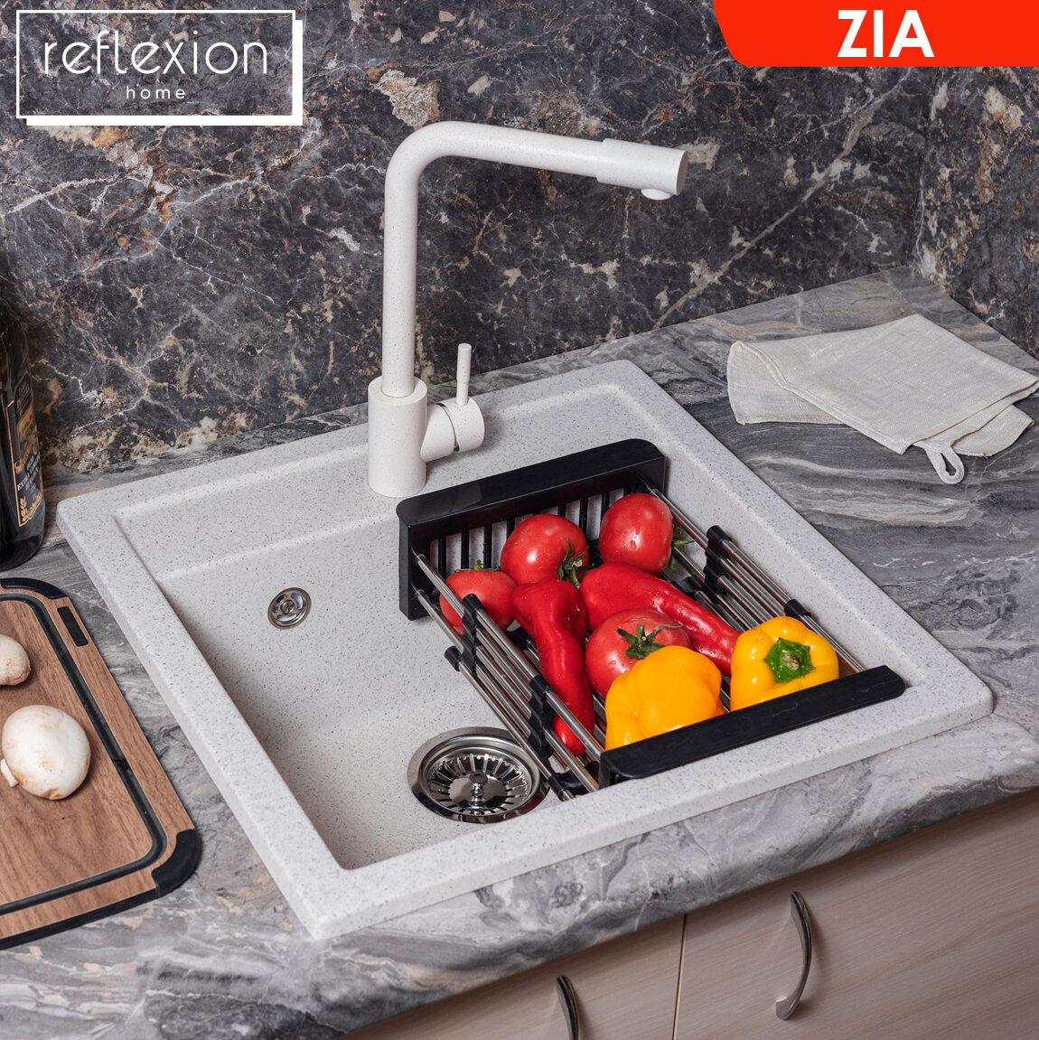 Кухонная мойка (сифон в комплекте) кварцевая врезная прямоугольная 51х50,5 см Reflexion Zia RX1251WH, цвет - белый 6 726 ₽ Подробнее