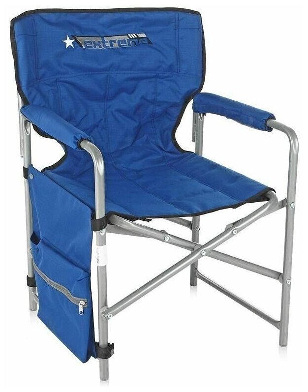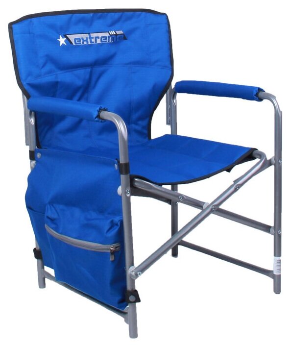 Кресло складное c карманами КС1 арт.КС1/ДС серый синий, без м/э