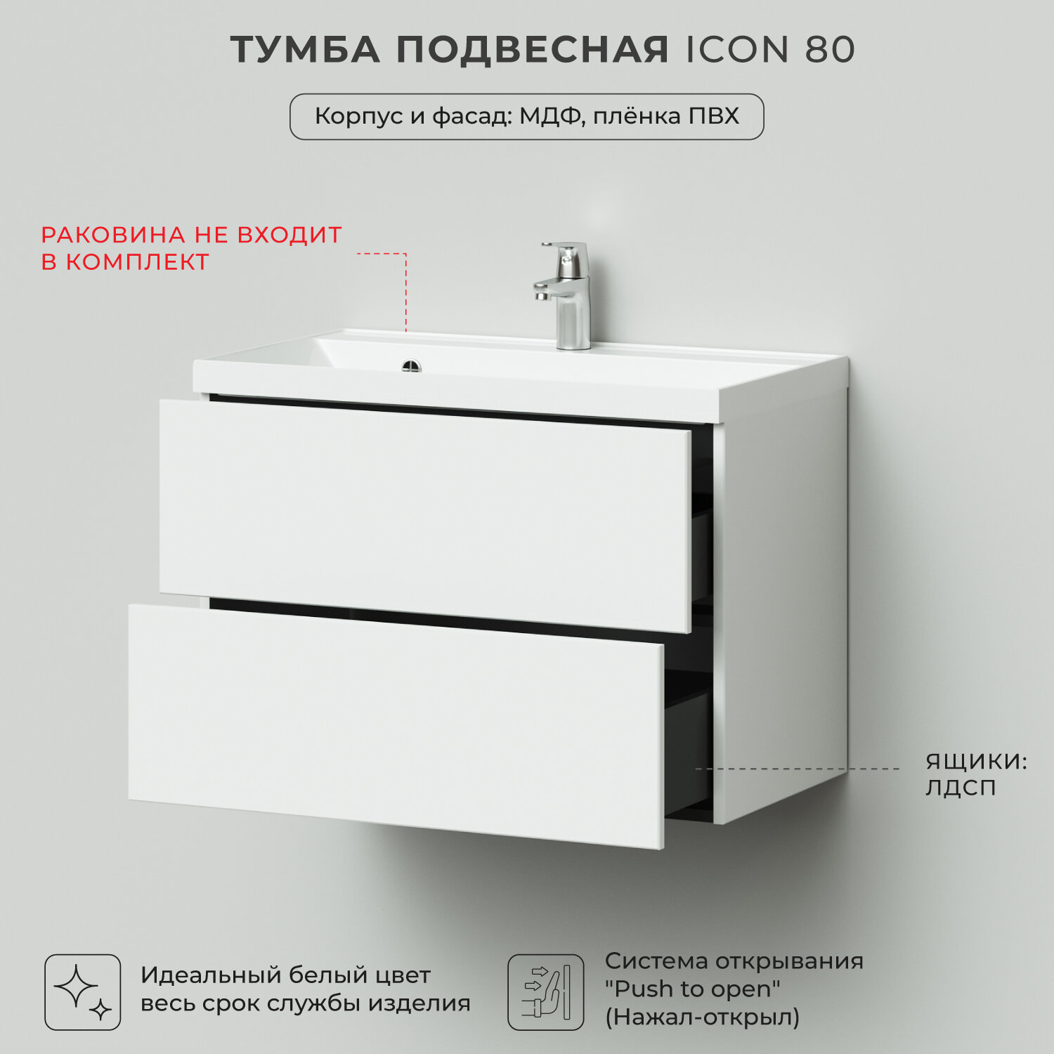 Тумбы под умывальник Tумба под раковину в ванную / Тумба для ванной Итана Icon 80 799х447х541 Белый глянец подвесная // под Раковина для ванной Итана Clarissa 80