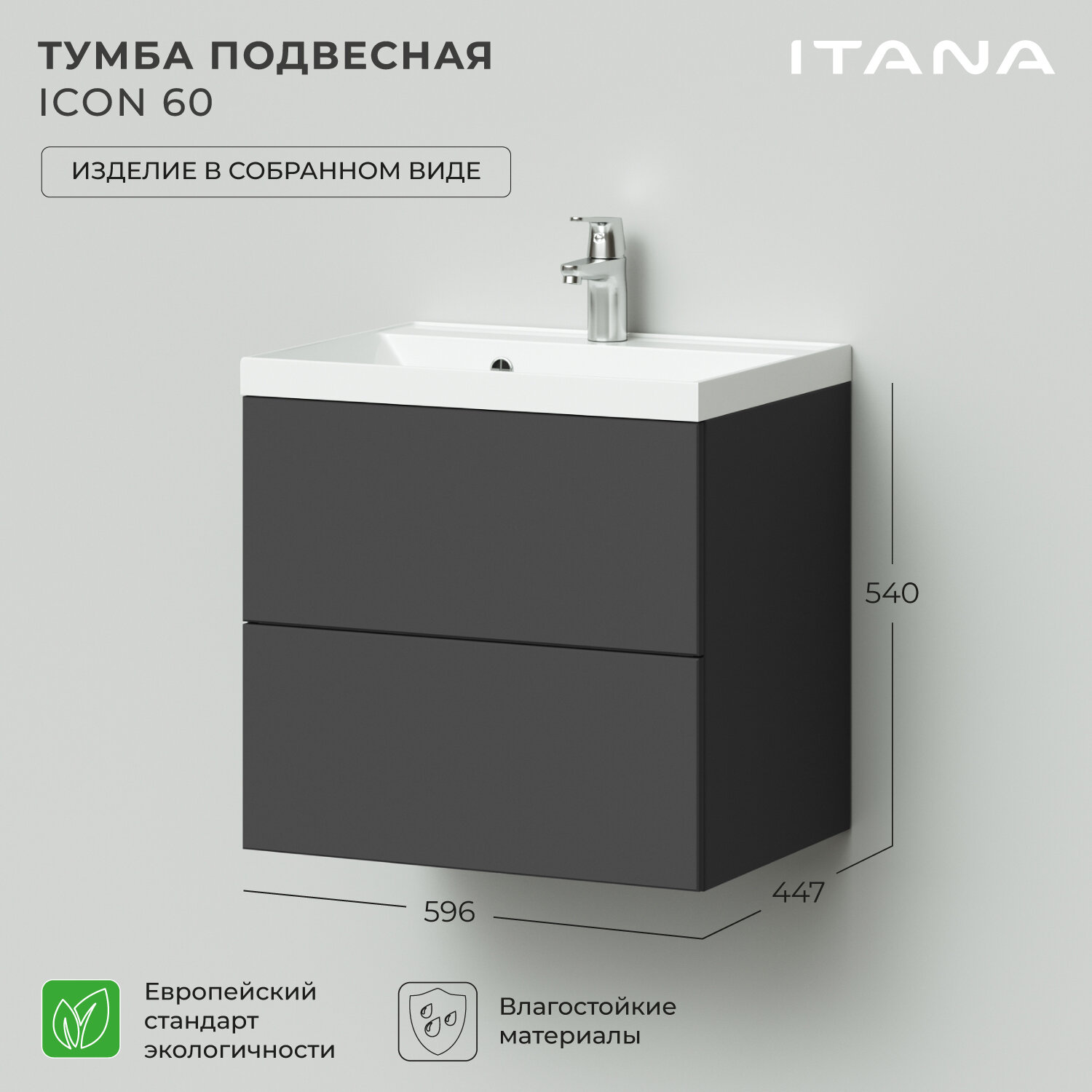 Тумбы под умывальник Tумба под раковину в ванную / Тумба для ванной Итана Icon 60 596х447х540 Графит подвесная// под Умывальник мебельный Итана Clarissa 60