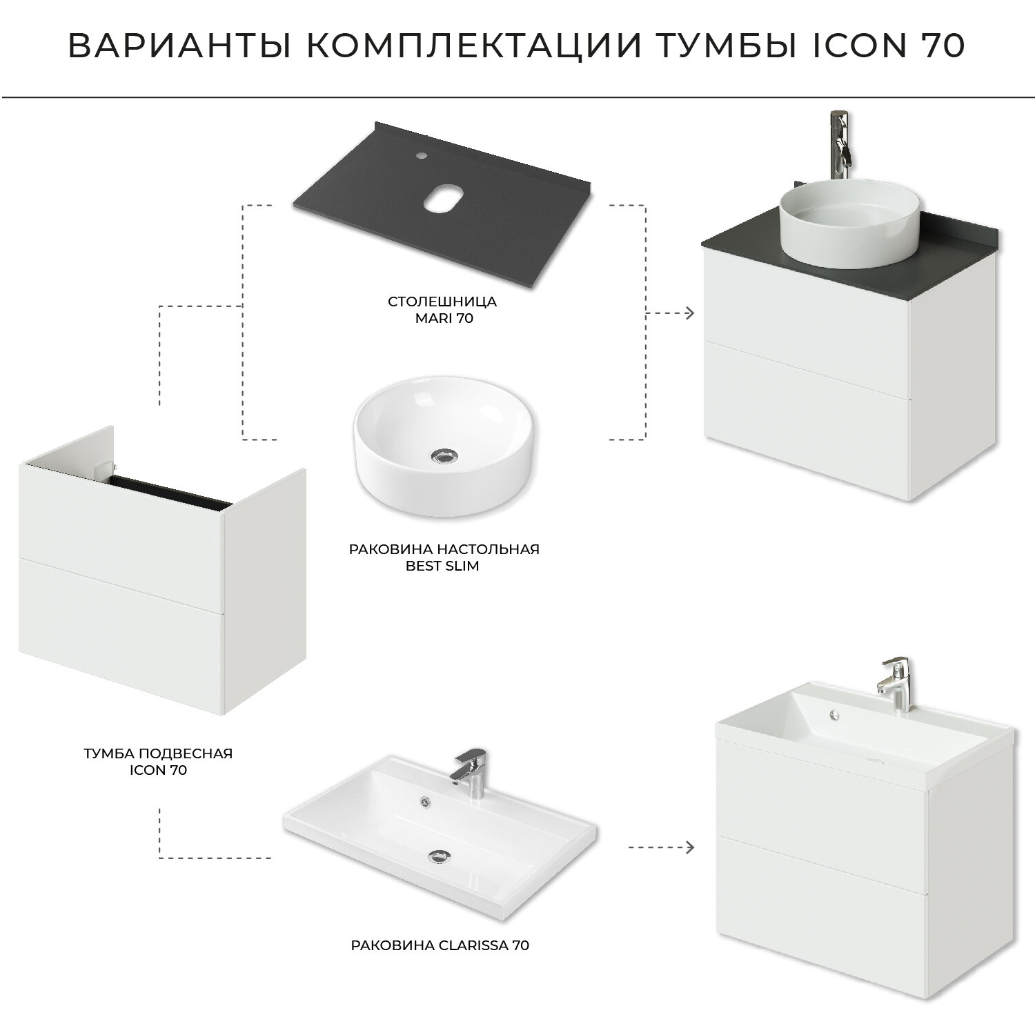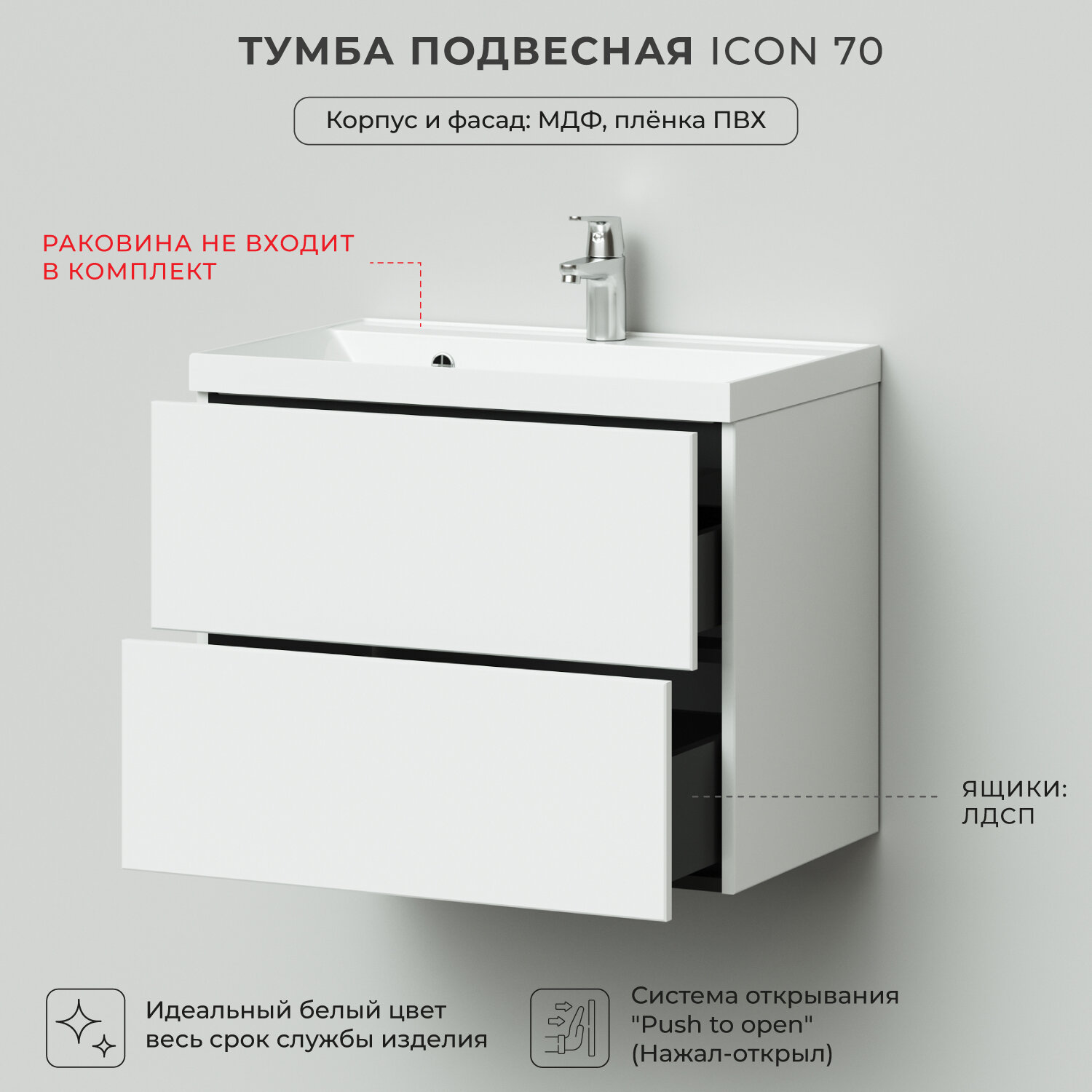 Тумбы под умывальник Tумба под раковину в ванную / Тумба для ванной Итана Icon 70 694х446х541 Белый глянец подвесная // под Раковина для ванной Итана Clarissa 70