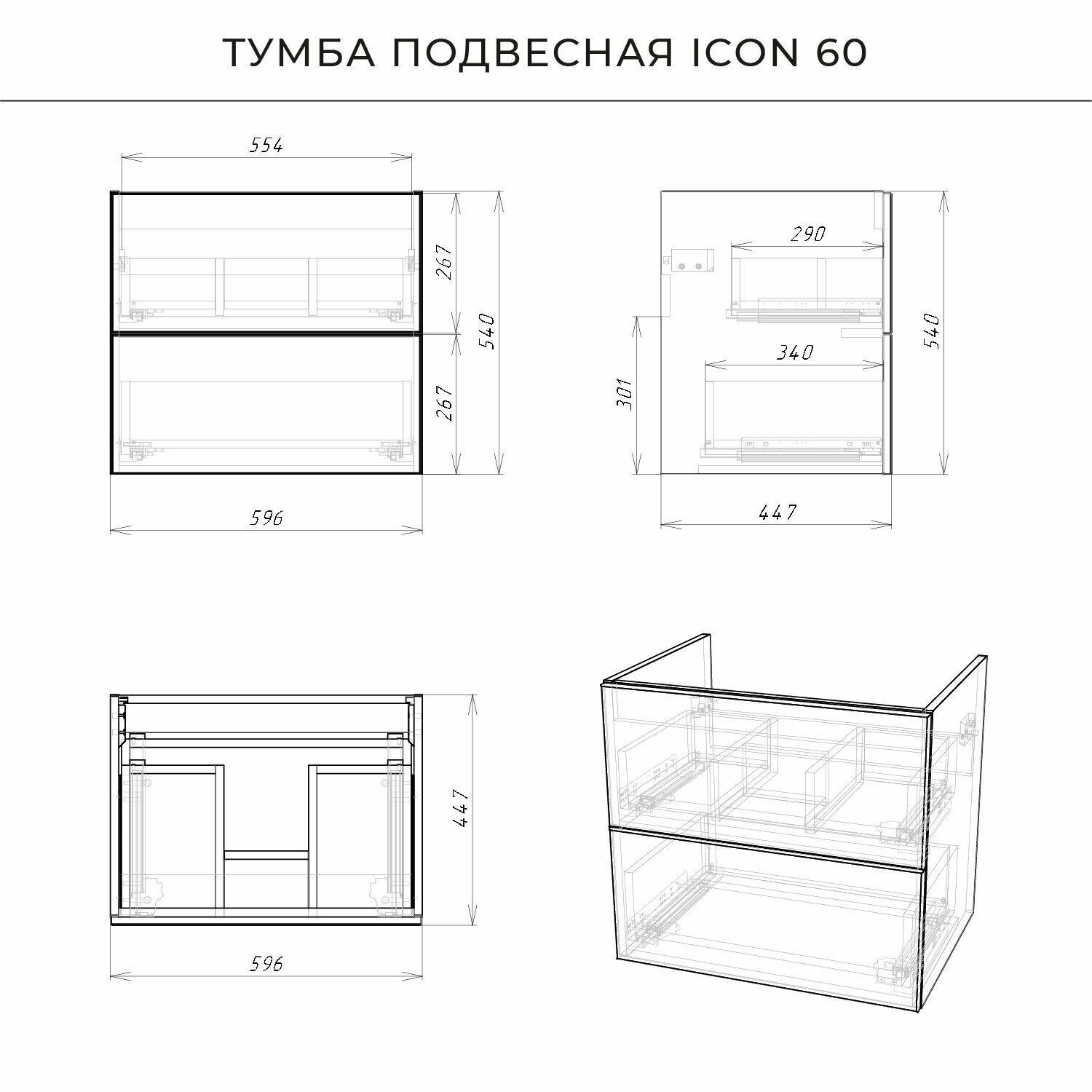 Tумба под раковину в ванную / Тумба для ванной Итана Icon 60 596х447х540 Графит подвесная// под Умывальник мебельный Итана Clarissa 60 17 190 ₽ Подробнее