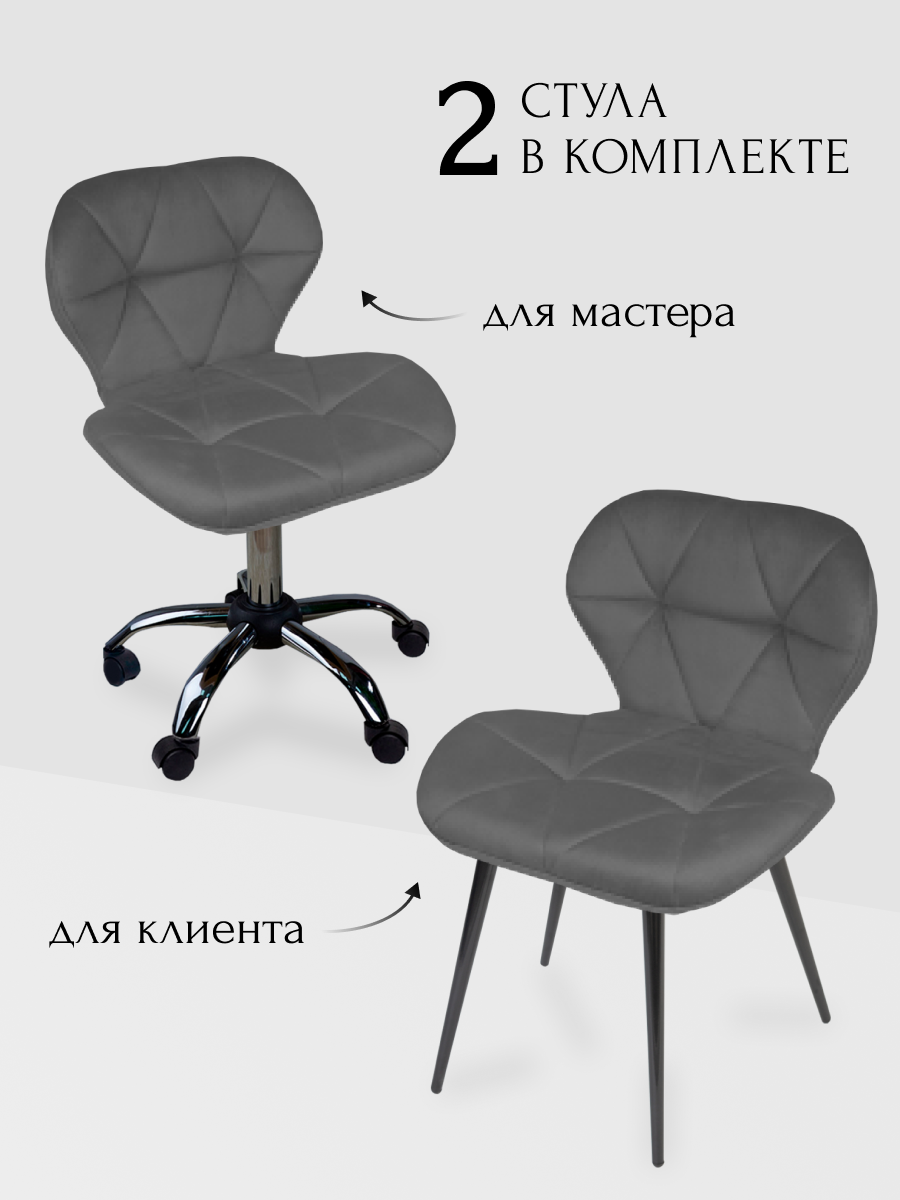 Стулья Комплект стульев для мастера и клиента Ракушка, Уютный мастер, темно- серый
