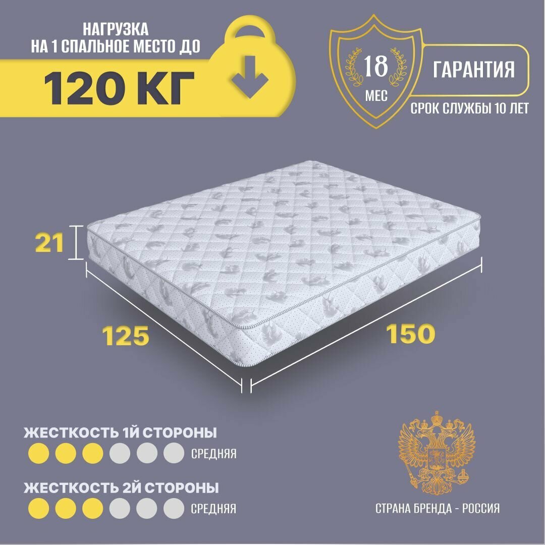 Матрас беспружинный 125х140, для кровати, Cosmic Lua Joy анатомический, 17 см, полутороспальный, средней жесткости 12 450 ₽ Подробнее