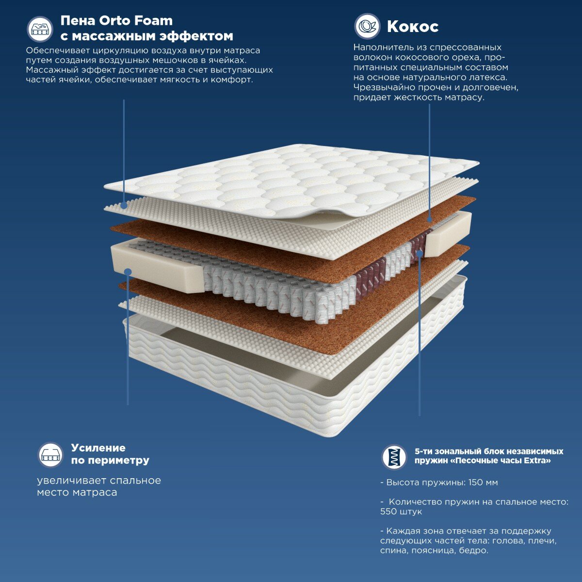 Анатомический матрас 180x186 Sleep Mode Comfort, ортопедический, двуспальный 13 244 ₽ Подробнее