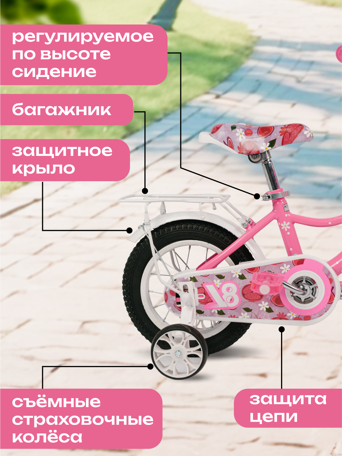 Детские велосипеды Велосипед детский 12" V8 V-X12P розовый для девочек, подходит на рост 80-100 см от 2 до 4 лет