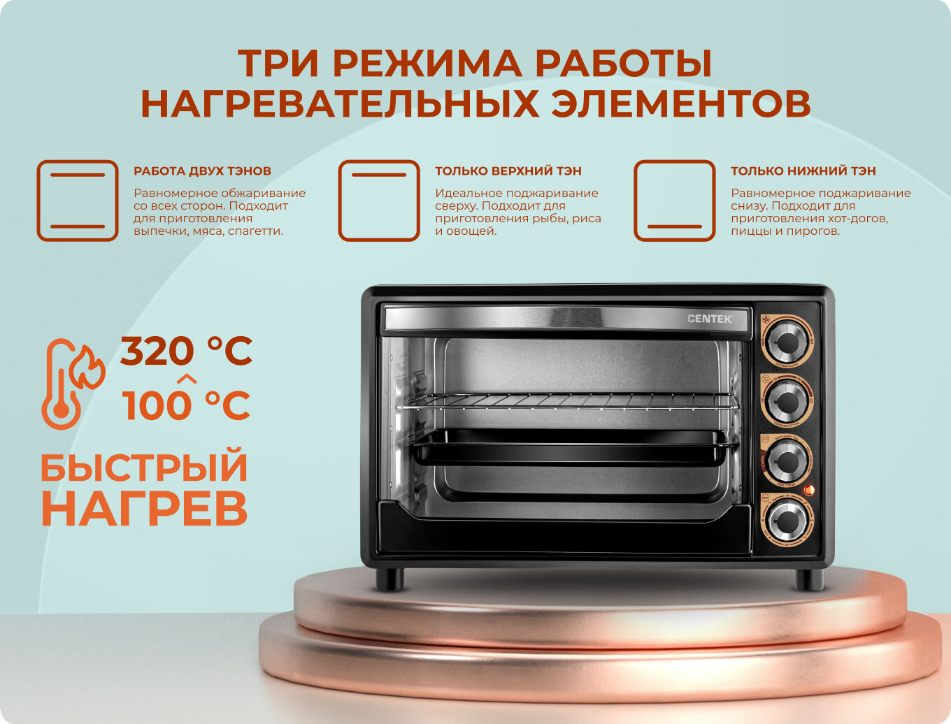 Мини-печь Centek CT-1530-36 PROMO, черный