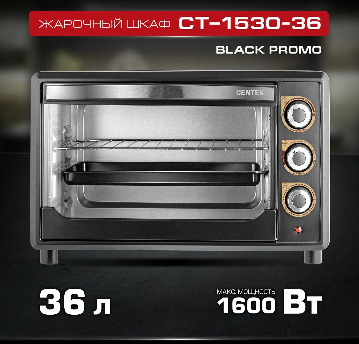 Мини-печь Centek CT-1530-36 BLACK PROMO, 36 л, 1 противень, 1600 Вт, таймер