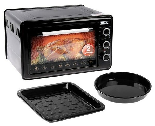 Электродуховка AKEL AF-730 (36 л, металлик, 2 противня, ТЭН повышенной мощности, таймер, терморегулятор)