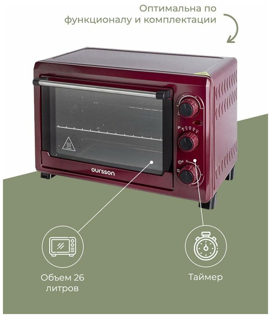 Лучшие цены. Классическая мини-печь OURSSON MO2610 объемом 26 литров оптимальна по функционалу и комплектации, проста в управлении, занимает мало места, легко справится с приготовлением любых блюд, от сочного мяса на вертеле до хрустящих тостов на решетке. Магазины в вашем городе.