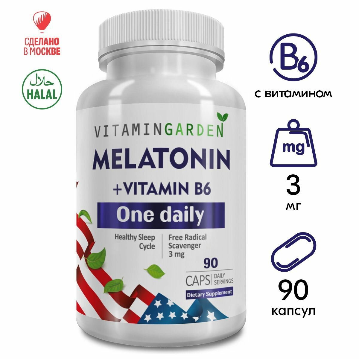 Аминокислоты Мелатонин 3 мг для нормализации сна, успокоительное, снотворное для взрослых с витамином В6, комплекс витаминов, бады для женщин и мужчин Melatonin, 90 капсул