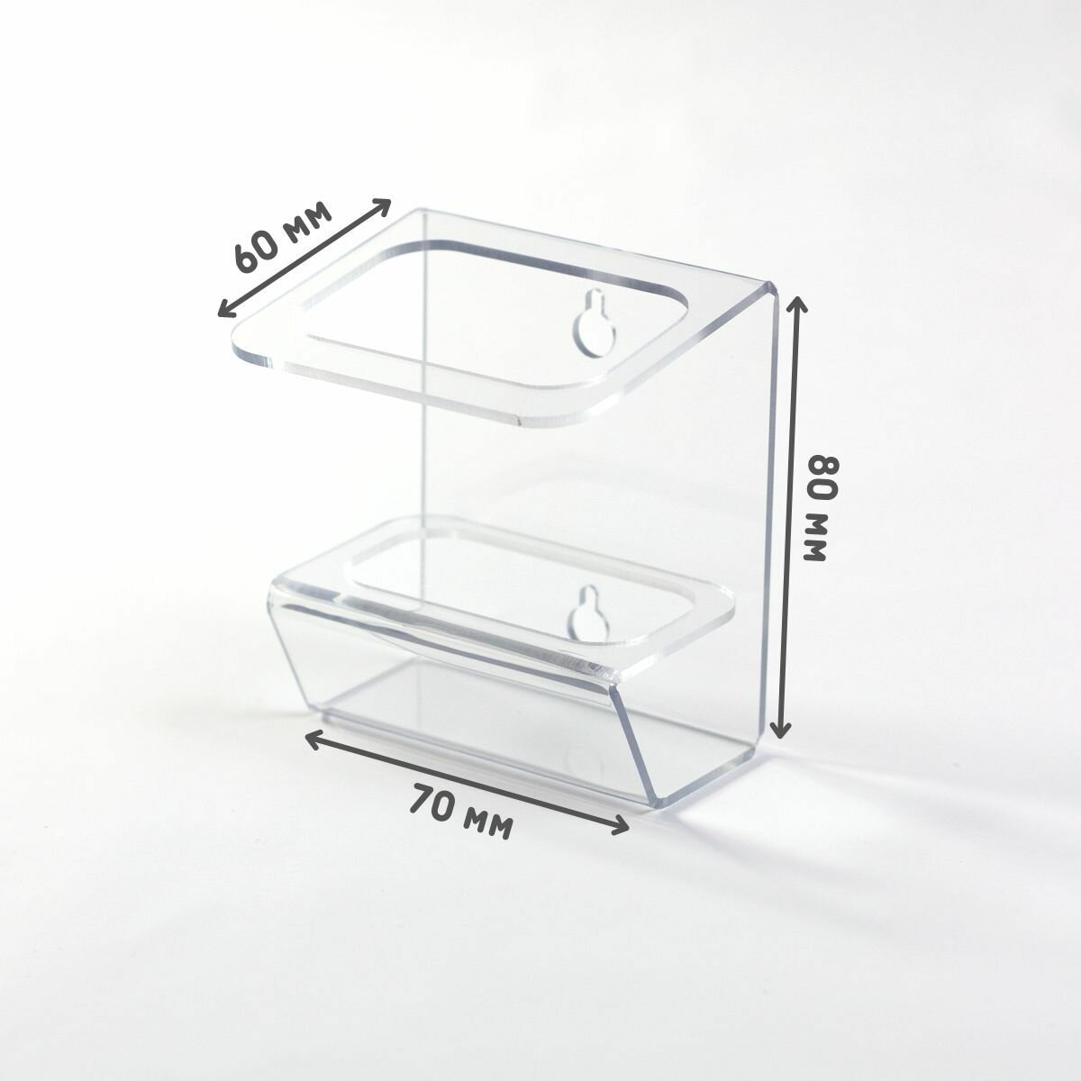 Подставки и крепления Держатель для пультов на стену с 1-ой ячейкой, прозрачный, размер 70х80х60 мм / Подставка для 1-го пульта