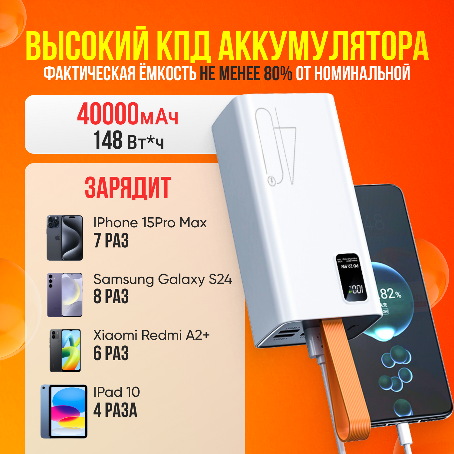 Powerbank Повербанк Powerbank 40000mah с быстрой зарядкой, внешний аккумулятор для телефона iPhone, Xiaomi, Samsung