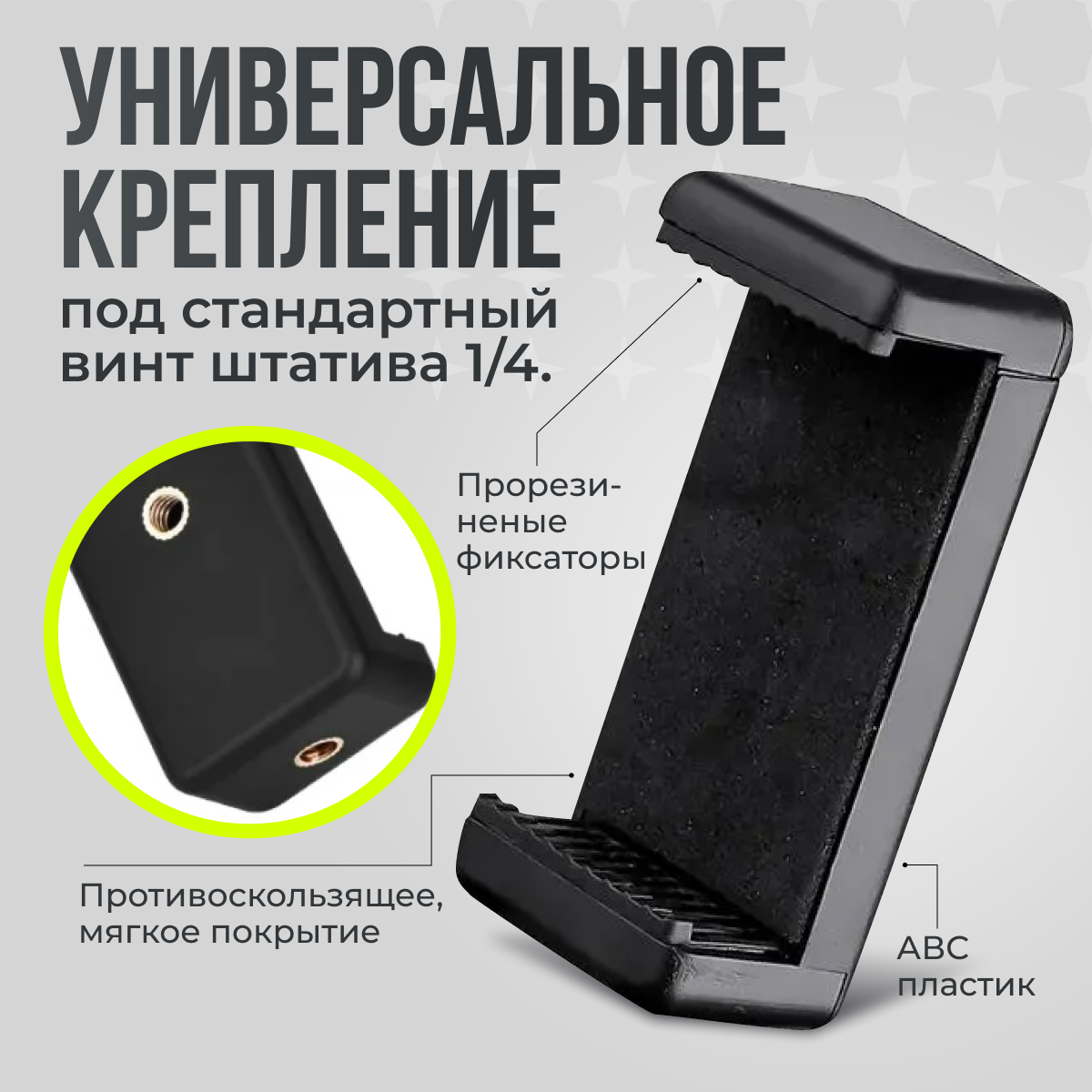 Держатели и подставки Держатель для телефона на штатив / Крепление раздвигающееся, для монопода, для трипода / Цвет черный