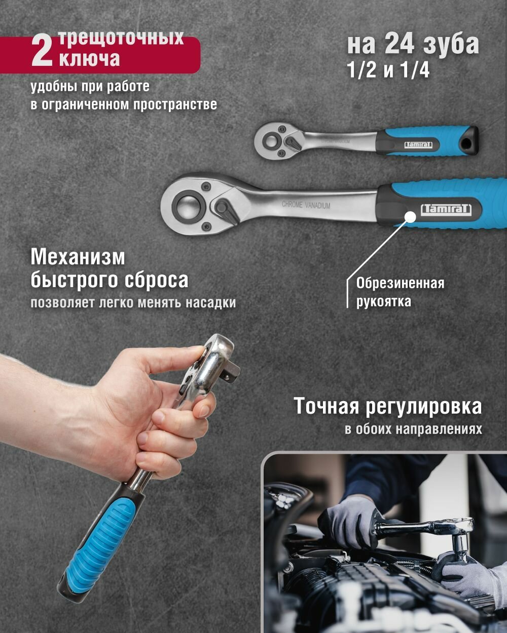 Наборы инструментов Набор автомобильных инструментов Tamirat 91 128 TTTA-In02, 94 предмета, трещотки на 24 зубца