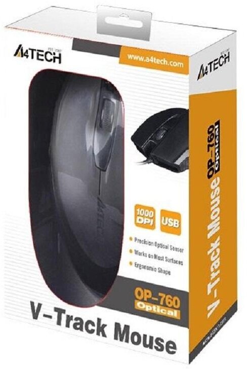 Мышь A4Tech OP-760 черная, 1000dpi, USB, 2 кнопки