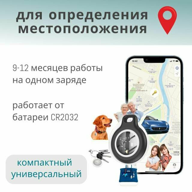 GPS-трекеры GPS-трекер маячок брелок AirTag ( для iPhone) для автомобиля, ключей, животных, одежды черный + чехол в подарок