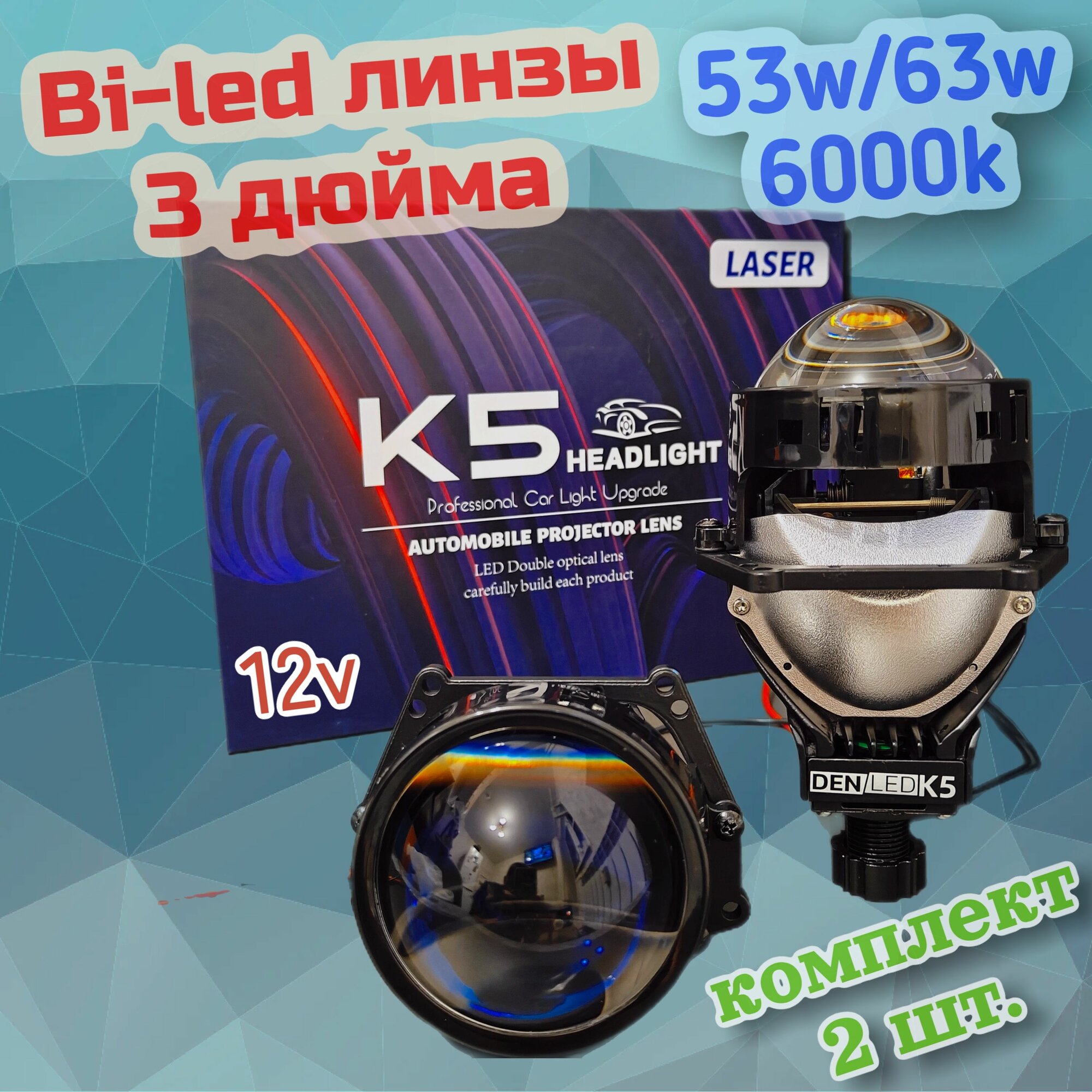 Автолампы Светодиодные Bi led (Би-лед) линзы DENLED K5 3 дюйма ближний и дальний свет комплект (2 шт.)