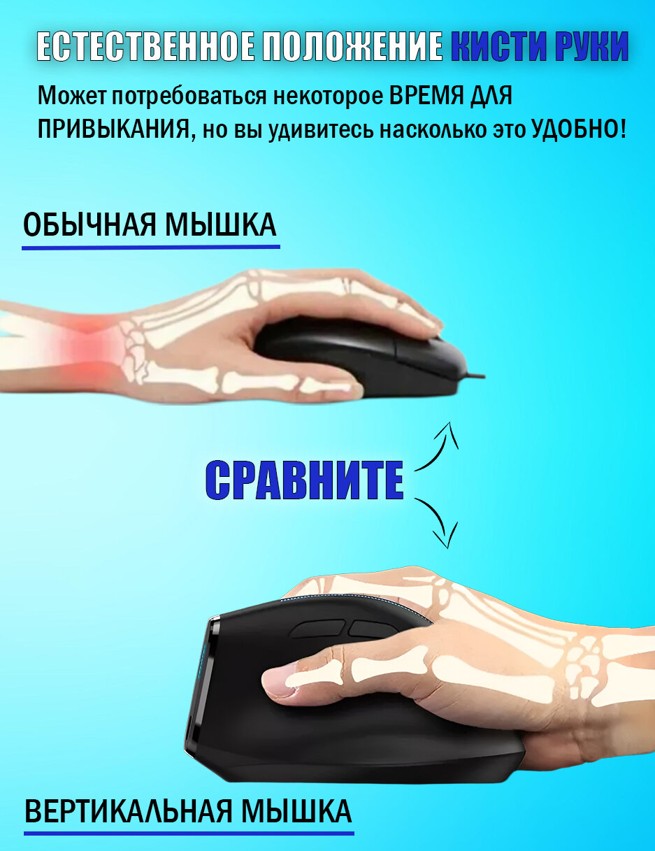 Вертикальная мышь беспроводная, ZELOTES F36, перезаряжаемая, с подсветкой RGB, для компьютера, черная 1 900 ₽ Подробнее
