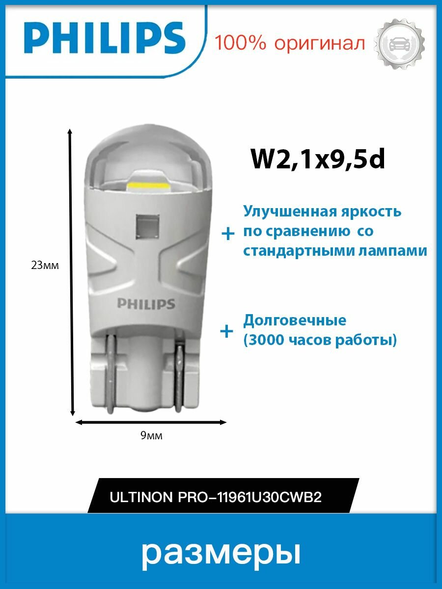 Автолампы Лампа W5W 12V 0,6W (W2,1x9,5d) 6000K Ultinon Pro3100 SI (бл. 2шт) - 11961U30CWB2