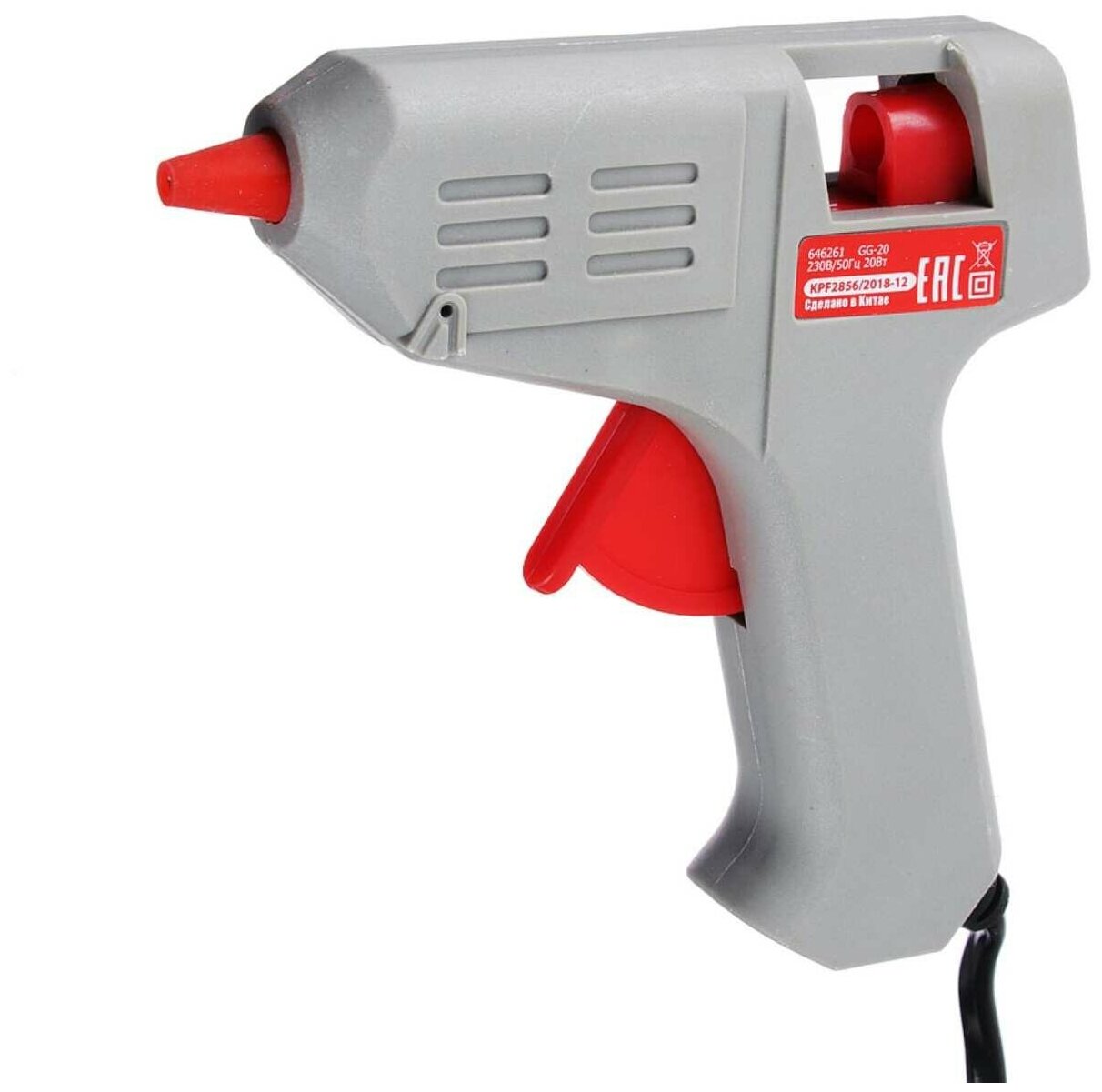 Пистолет клеевой электрический GG-20, 20Вт.нагрев 3-5 мин, 6 гр/мин, +2 стержня 7мм