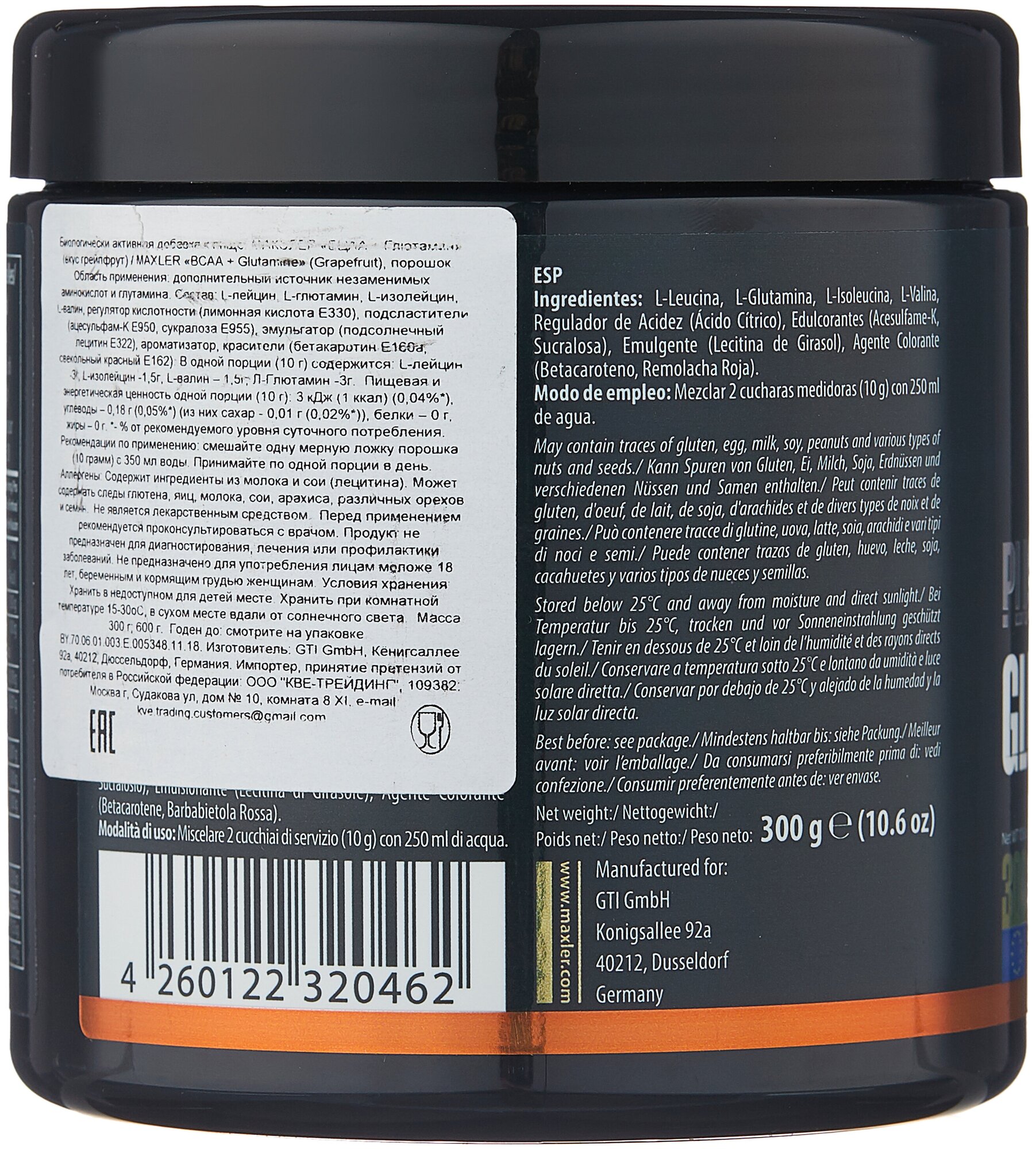 BCAA + Glutamine 300 гр для дополнительной энергии и восстановления (Maxler) Грейпфрут