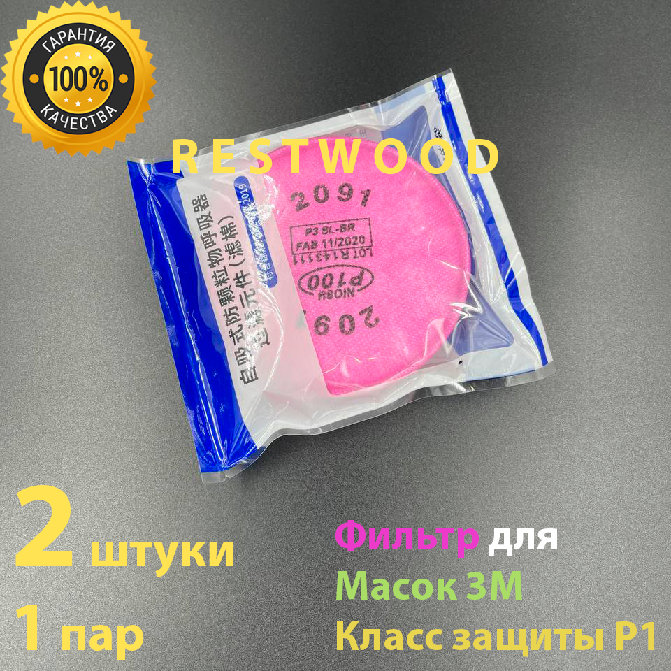 Стулья 3М Фильтр розовый 2091 для респиратора 6200/7502/6800 от пыли, дыма, аэрозолей, P3, 2 шт.