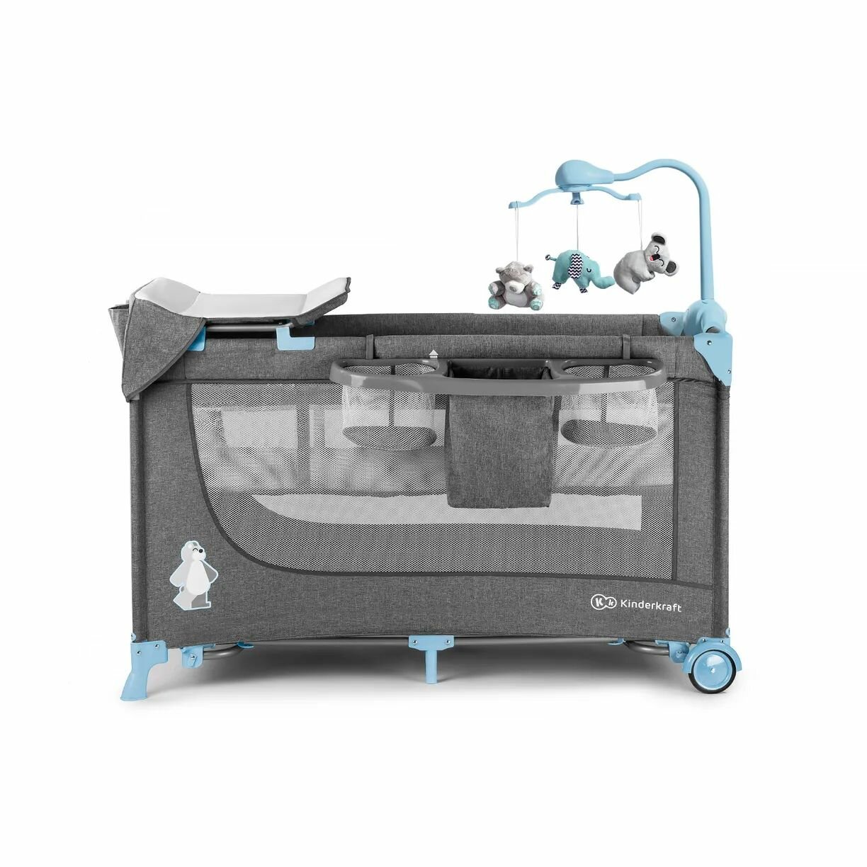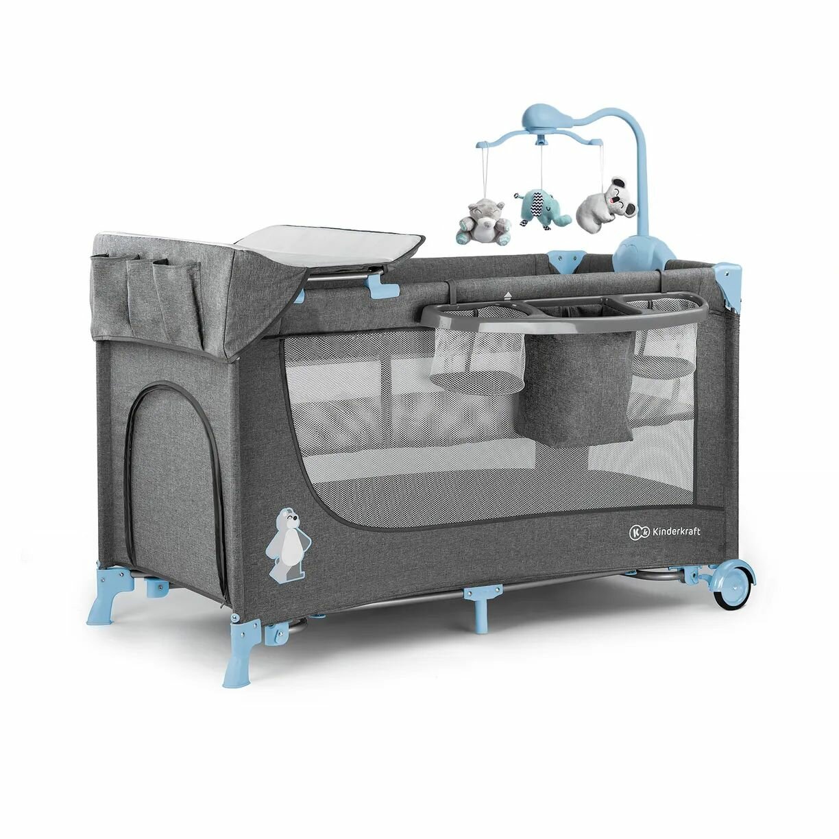 Манежи Детская кровать-манеж Kinderkraft JOY + аксессуары, серый/голубой
