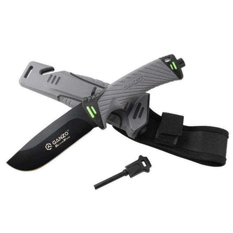 Нож выживания с огнивом Ganzo G8012, чёрный