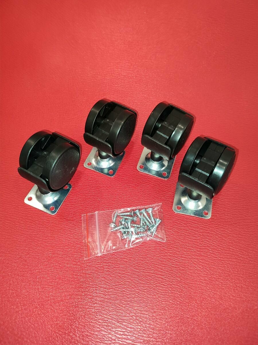 Подставки и крепления Колесо (ролик) мебельное поворотное диаметром 40 мм для тумбы, стола, с крепёжной площадкой и крепежом в комплекте