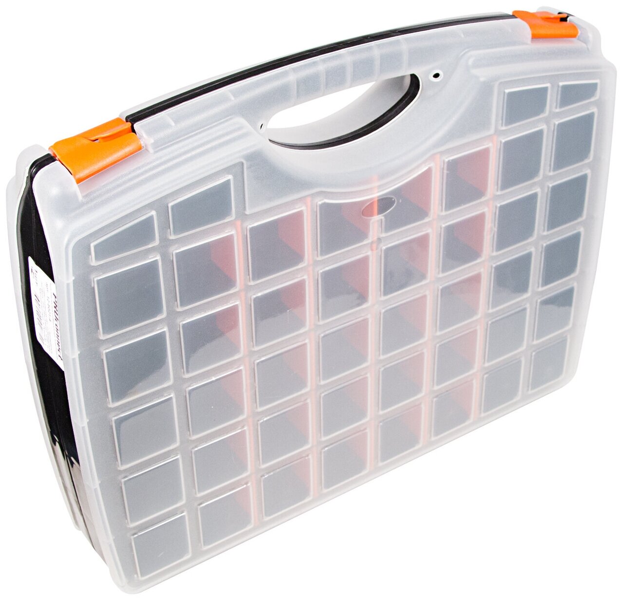 Лучшие цены. Ящик пластиковый универсальный PROconnect двухсторонний 425х330х85 мм — отличное решение для хранения ручного инструмента, разъемов, расходных материалов, крепежа и рыболовных снастей. Регулируемые секций по размеру и количеству позволят наилучшим образом организовать пространство для быстрого доступа и хранения инструмента. Магазины в вашем городе.