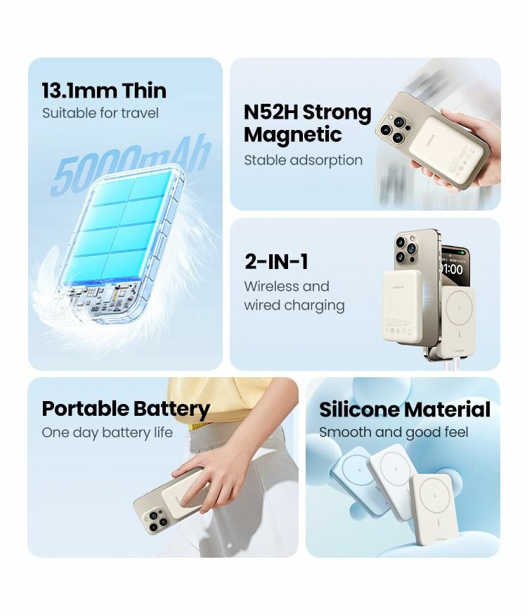 Ugreen PB560 (25207) Magnetic Wireless Power Bank white внешний аккумулятор c беспроводной зарядкой 5000 мач 3 000 ₽ Подробнее