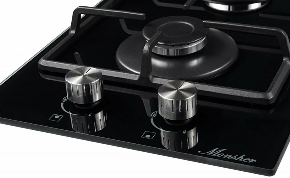 Лучшие цены. Газовая варочная поверхность Monsher MHG 33 BG выпускается в черном цвете с двумя конфорками, управление которыми возможно при помощи простого поворотного механизма, располагающегося на рабочей панели. Материал изготовления панели конфорок – чугун, гарантирующая долгий срок службы и устойчивость к повреждению, если прислушиваться всем эксплуатационным правилам и рекомендациям. Сами же решетки выполнялись из чугуна, при этом аккуратно вписываются в конструкцию. Магазины в вашем городе.