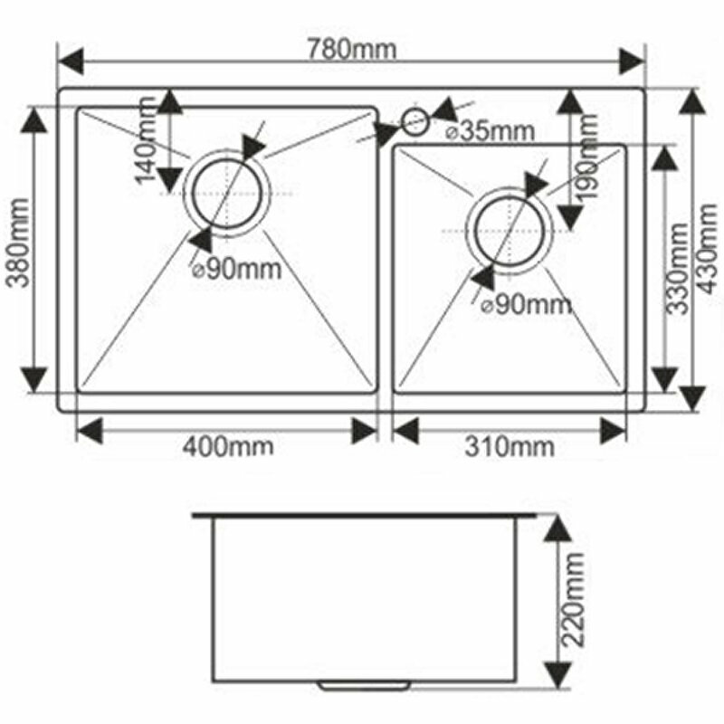 Мойка Melana ProfLine S7843H 3,0/220 сатин 2-я чаша, врезная прямоугольная