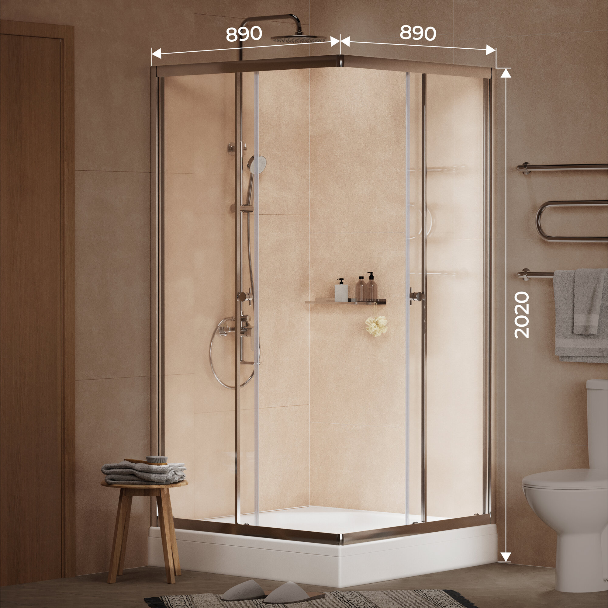 Душевые кабины Душевой уголок с поддоном Homsly, хром, квадратный 90*90 см, коллекция Basic, 4H-020-CS90-BSC