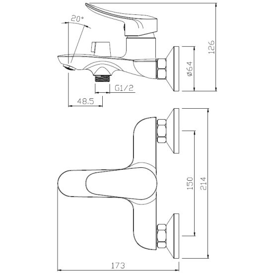Смеситель Смеситель для ванны и душа ZENTA Вейв Z2703 керамическим переключатель хром