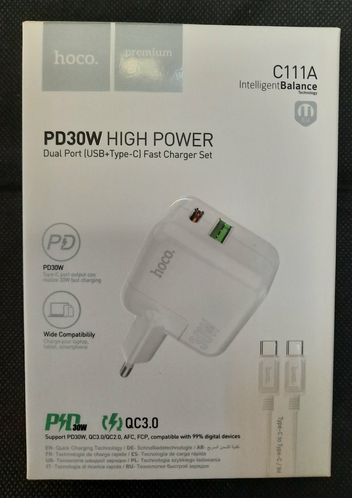 Сетевое зарядное устройство Hoco C111A PD30W+QC3.0 White