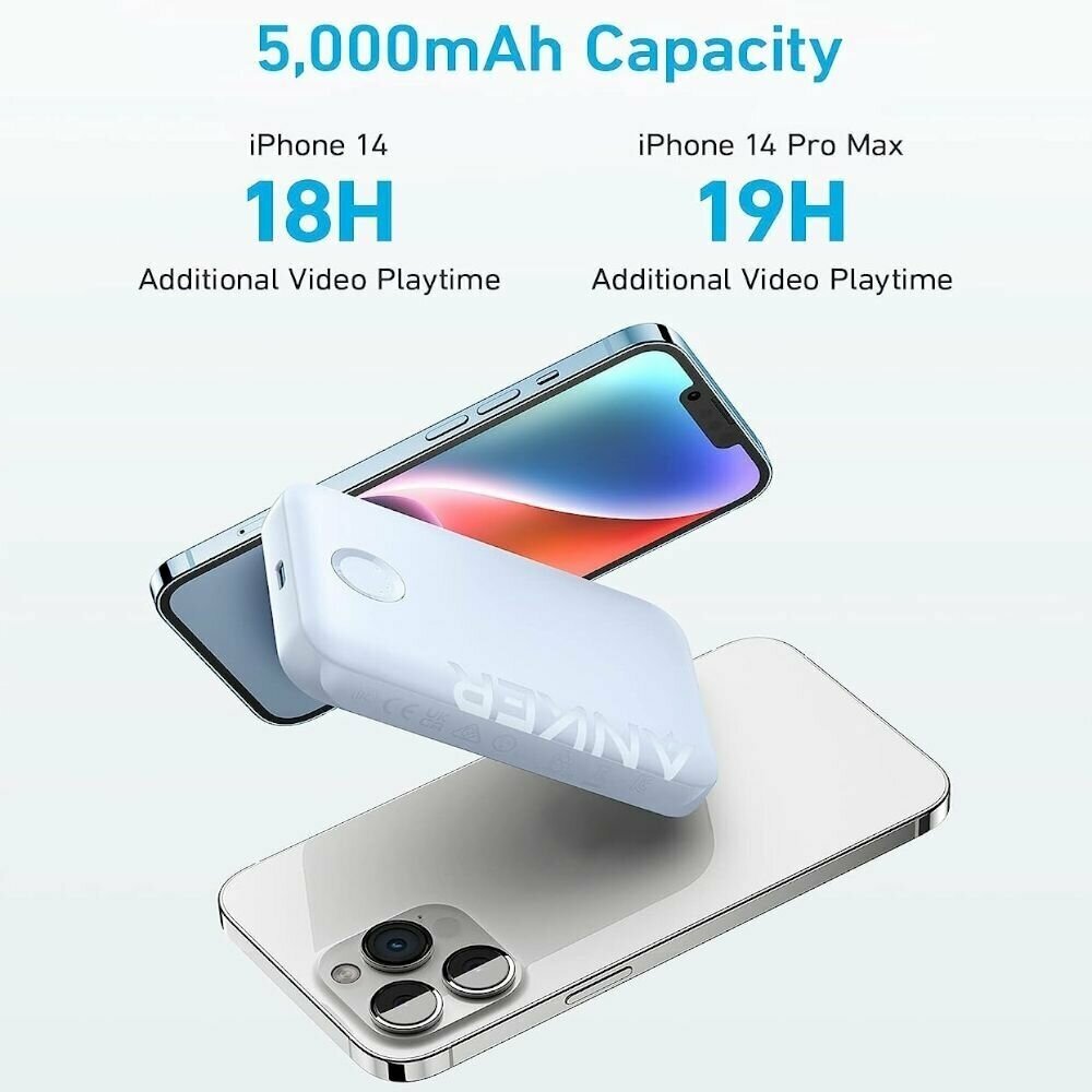 Внешний аккумулятор Anker 321 Powercore Mag-Go 5000 мАч для iPhone 15/14/13/12 серии (A1616), белый 3 999 ₽ Подробнее