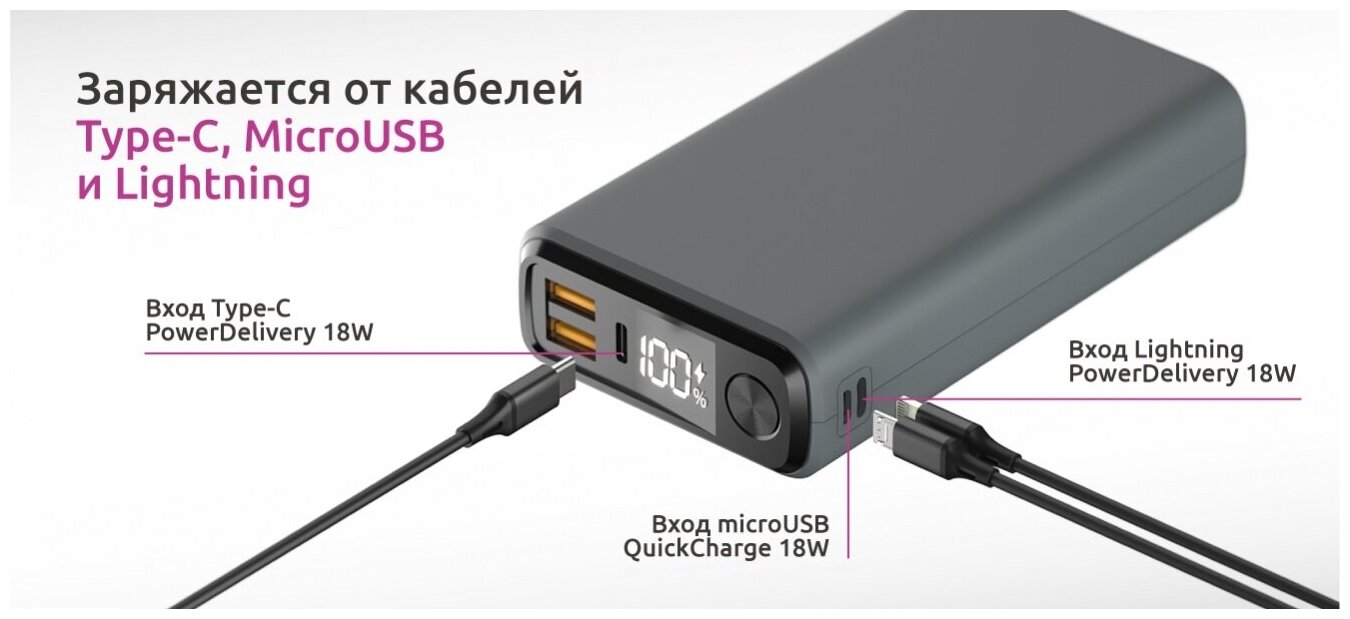 Внешний аккумулятор OLMIO QS-30, 30000 мАч, серый 4 290 ₽ Подробнее