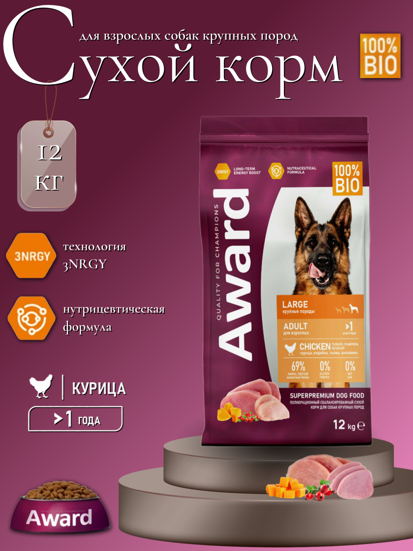 Корм для собак AWARD ADULT LARGE для взрослых собак крупных пород с курицей и индейкой 12 кг