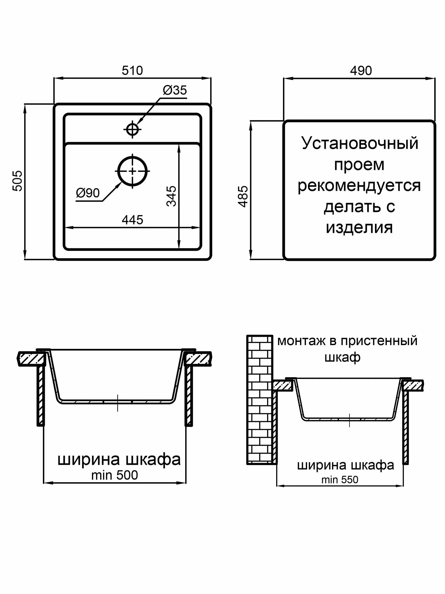 | Минимальная ширина шкафа (базы) | 600 мм |
