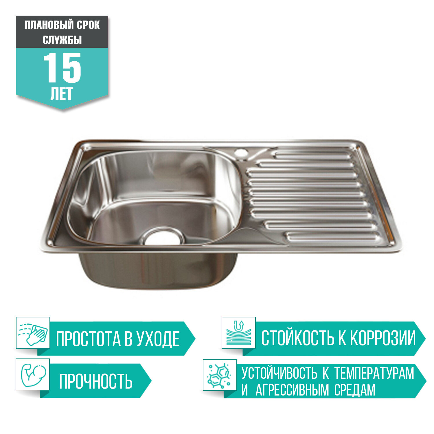 Кухонные мойки Кухонная мойка Mixline Врезная 76x42 с сифоном, нержавеющая сталь 0,8 мм (4620031448884)