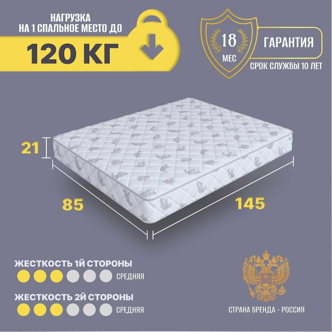 Матрасы Матрас 85х145 беспружинный, анатомический, для кровати, Cosmic Meteor Joy, средне-жесткий 21 см с одинаковой жесткостью