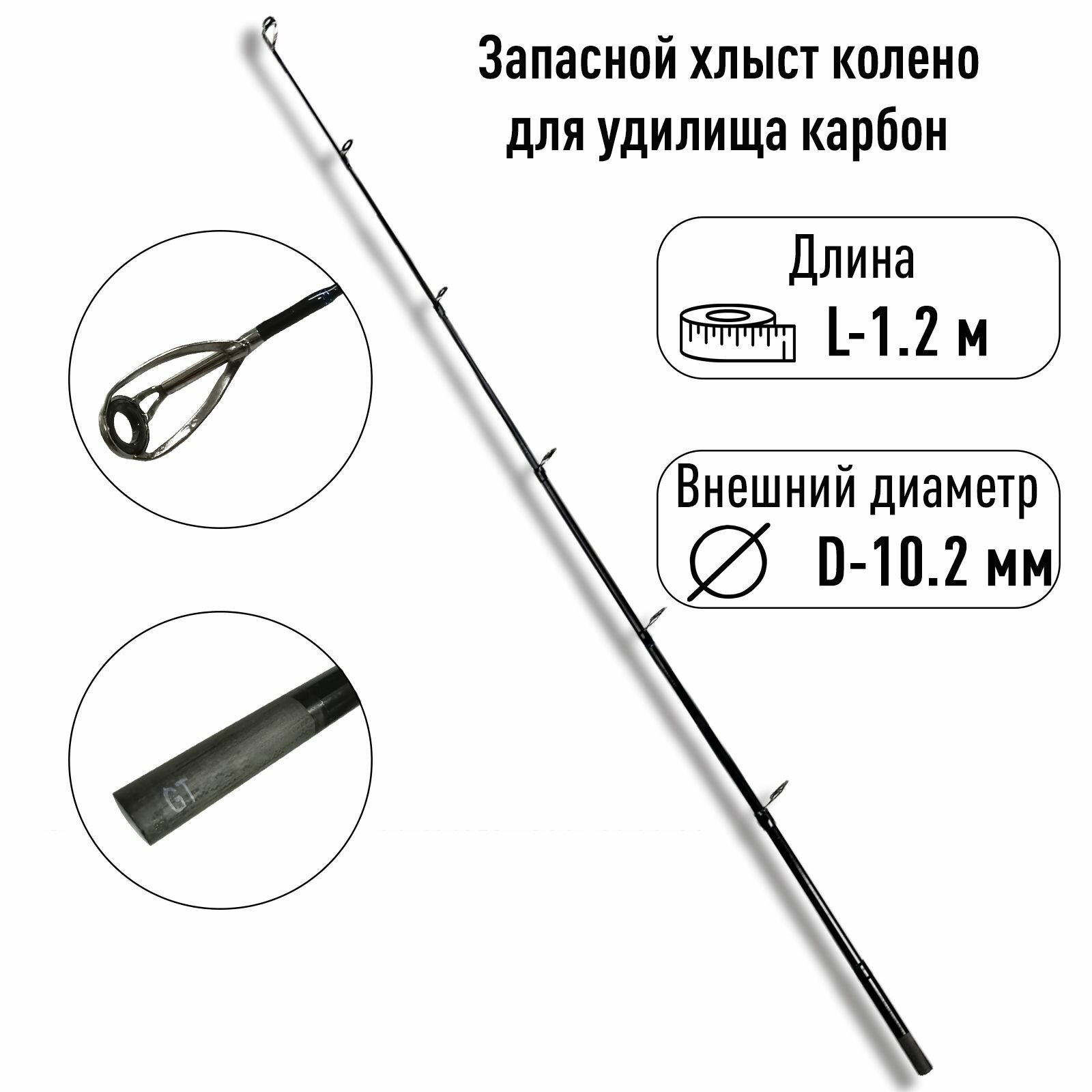 Удилища Запасной хлыст колено вершинка для удилища спиннинга карбон 120см диам 10.2мм тест универсальный